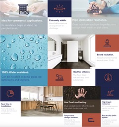 De panelen brengen de uitstraling van elke ruimte, zowel residentieel als commercieel, naar een hoger niveau. Dankzij het tong-en-groef kliksysteem zijn de panelen snel en eenvoudig te installeren, zelfs door doe-het-zelvers. Ze kunnen rechtstreeks over bestaande tegels worden geplaatst, zonder breekwerk.